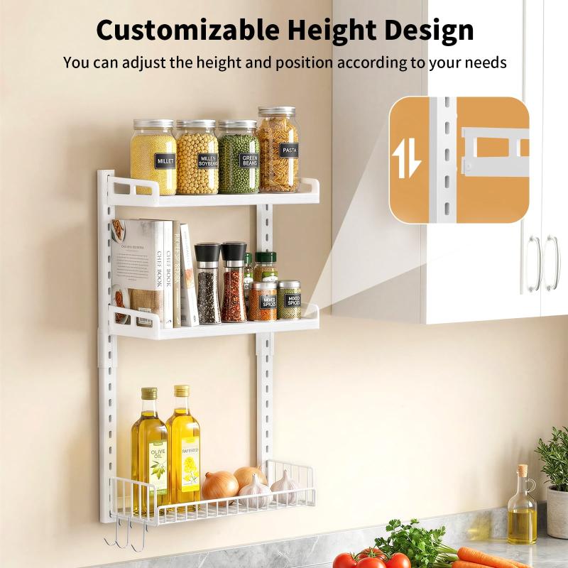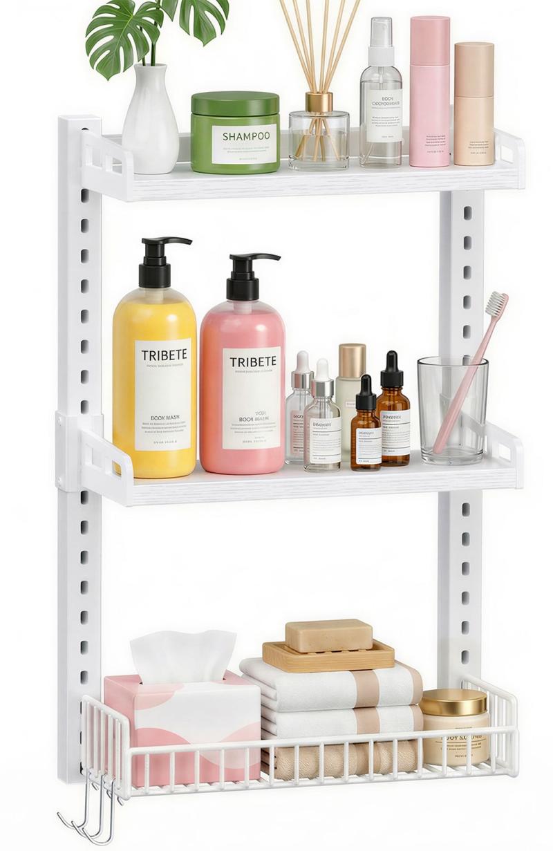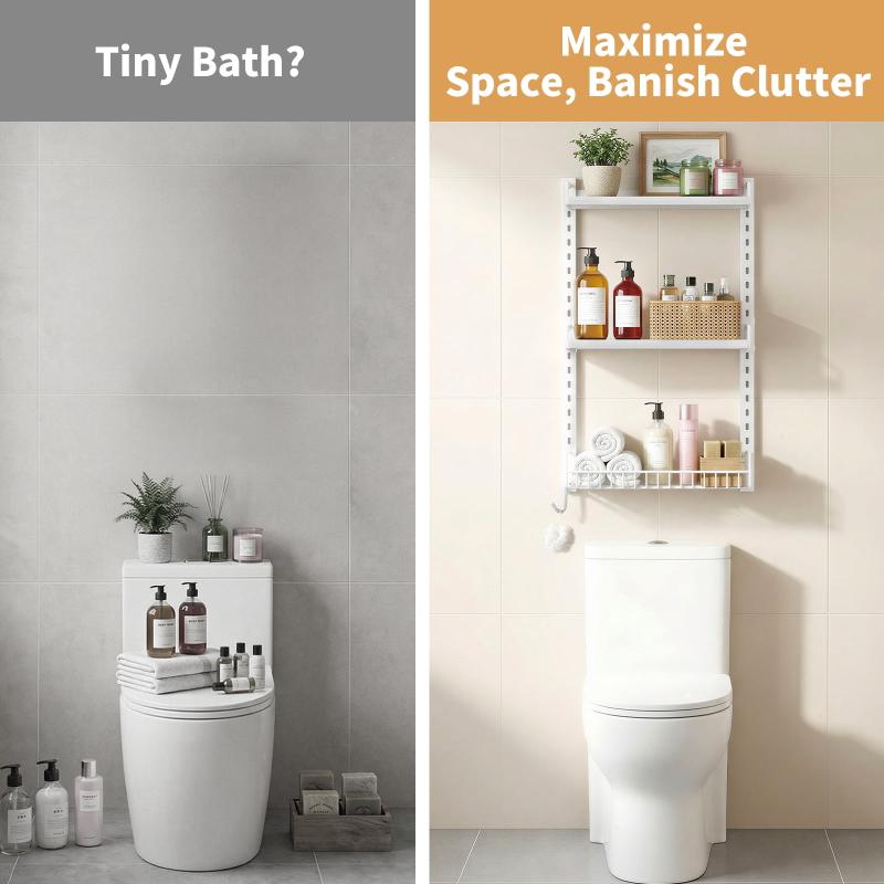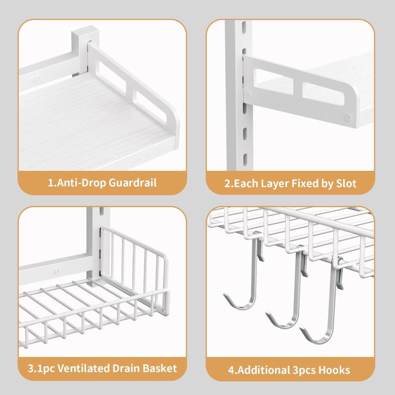 Transform your space with the Biemlerfn 3-Tier Adjustable Multi-Function Shelf! Made from premium materials, this 3-tier shelf is ideal for bathrooms, kitchens, storage rooms, and balconies. The slotted design allows you to easily adjust the height of each tier to accommodate different items, from toiletries and condiments to decorative items and necessities. Three additional hooks can be used to hang towels, cloths, and more, maximizing space and keeping everything within easy reach. Installation is extremely simple, even for beginners, and it boasts a load capacity of up to 75 pounds and is durable.