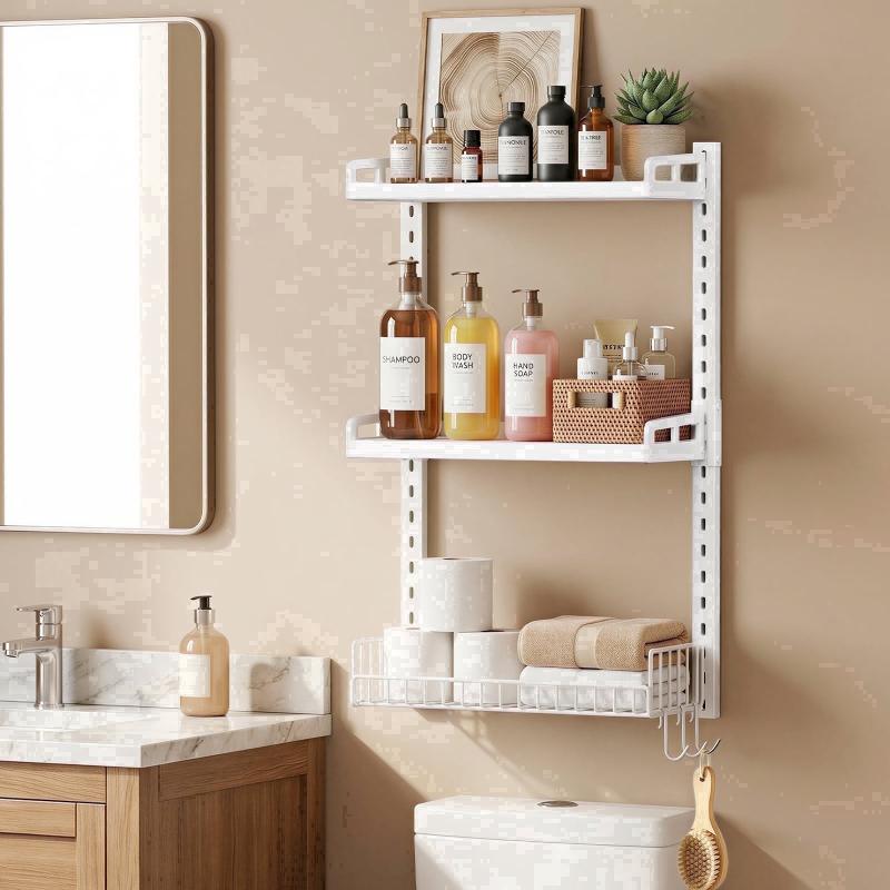 Biemlerfn 3-Tier Wall Mounted Storage Organizer Shelf, Space-Saving & Height-Adjustable Over The Toilet Storage Rack for Bathroom, Kitchen, Living Room, White