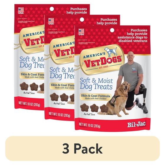 (3 pack) Bil-Jac VetDogs Veteran's K-9 Corps Skin & Coat Formula, Soft & Moist Dog Treats, Chicken, 10 oz