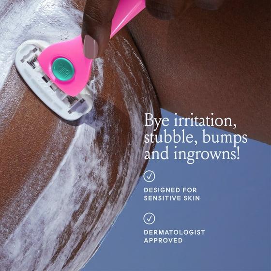Say bye to stubble, irritation, bumps and ingrowns! The Billie Women's Razor Refill Blades are made with 5 ultra-sharp blades and encased in 360º of aloe shave soap to float over your skin like a cloud. These nickel-free blades give you an ultra-gentle, ultra-close and comfy shave. Designed with optimal spacing between each blade to allow shave cream, soap and hair to pass on by. Each pack comes with 4 refills.