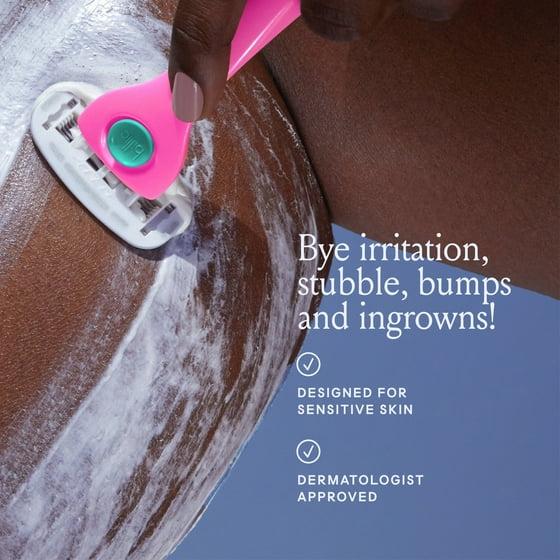 Say bye to stubble, irritation, bumps and ingrowns! The Billie Razor Refill Blades are made with 5 ultra-sharp blades and encased in 360 degrees of aloe shave soap to float over your skin like a cloud. These nickel-free blades give you an ultra-gentle, ultra-close and comfy shave. Designed with optimal spacing between each blade to allow shave cream, soap and hair to pass on by. Each pack comes with 8 refills. Billie Women’s Razor 5-Blade Refills, 8 Ct.