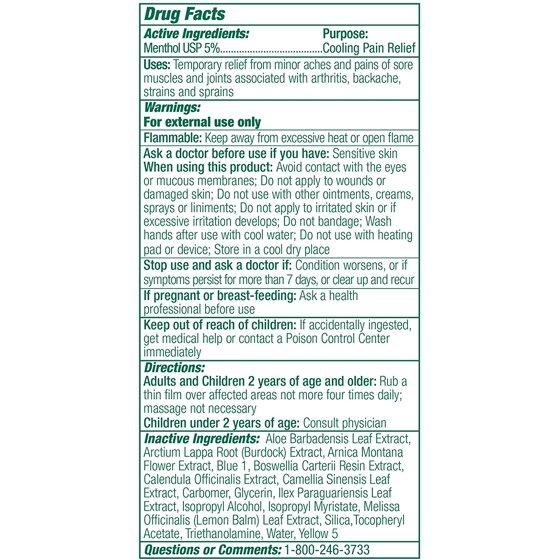 Cold Therapy Pain Relief Biofreeze PharmacopeiaMenthol Arnica Extract and Aloe Gel 4 oz