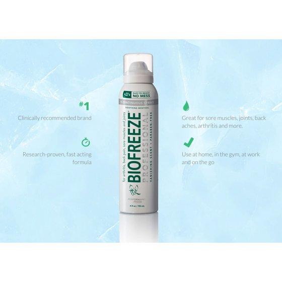 Biofreeze Pain Relieving Spray 4 oz. 360° Spray, Colorless Formula, 10.5% Menthol 1 Each - (Pack of 6)