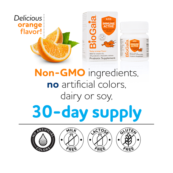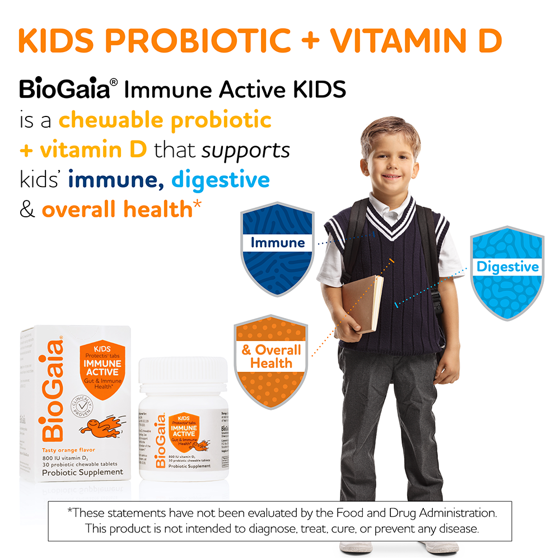 - KIDS PROBIOTIC + VITAMIN D: BioGaia Immune Active KIDS is a chewable probiotic + vitamin D that supports kids' immune, digestive, and overall health*