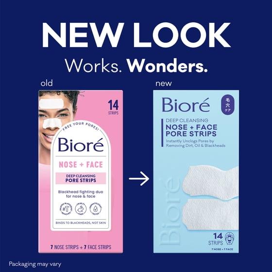 Bioré Nose + Face Deep Cleansing Pore Strips, Blackhead Remover, 7 Nose + 7 Face Strips