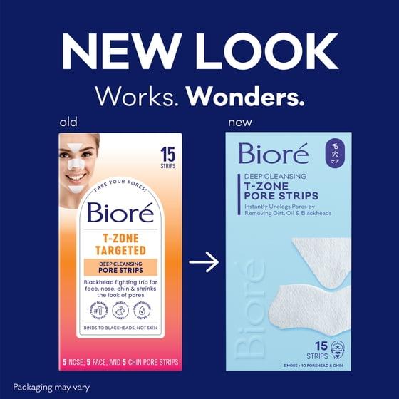 Bioré T-Zone Targeted Pore Strips, Blackhead Remover, 5 Nose + 5 Face + 5 Chin