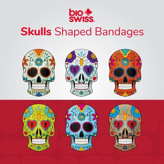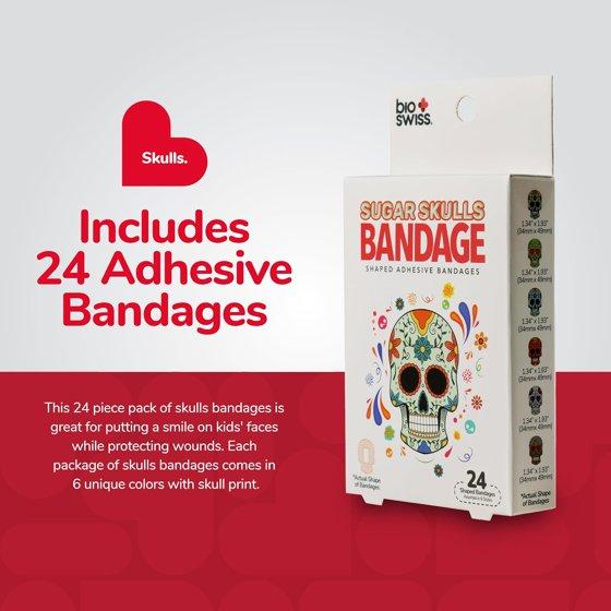 BioSwiss Bandages, Sugar Skull Shaped Self Adhesive Bandages, Latex Free Sterile Wound Care, 24 Count