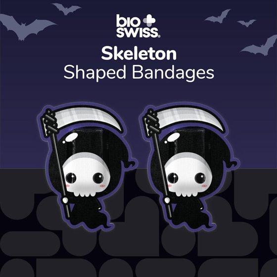 BioSwiss Bandages, Halloween Skeleton Shaped Self Adhesive Bandage, Latex Free Sterile Wound Care, 50 Count
