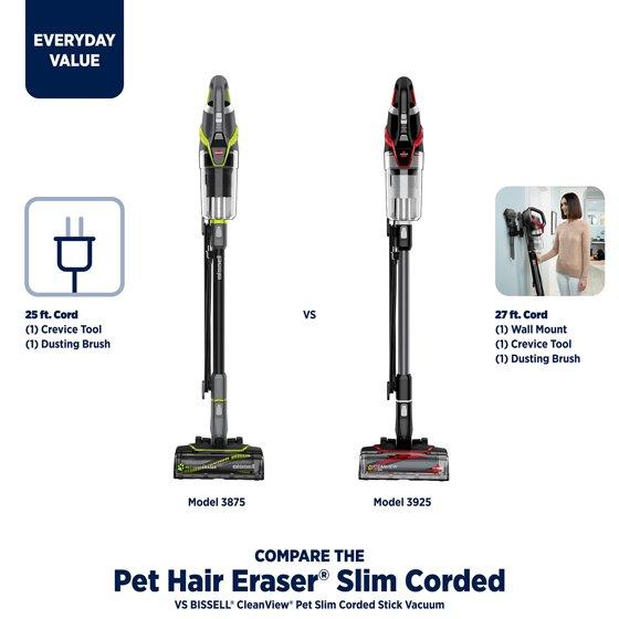 BISSELL Pet Hair Eraser Slim Corded Stick Vacuum, Carpet, Area Rugs, Hard Floor, Upholstery, Lightweight, Swivel Steering, Tangle-Free Brish Roll, 3875, Black