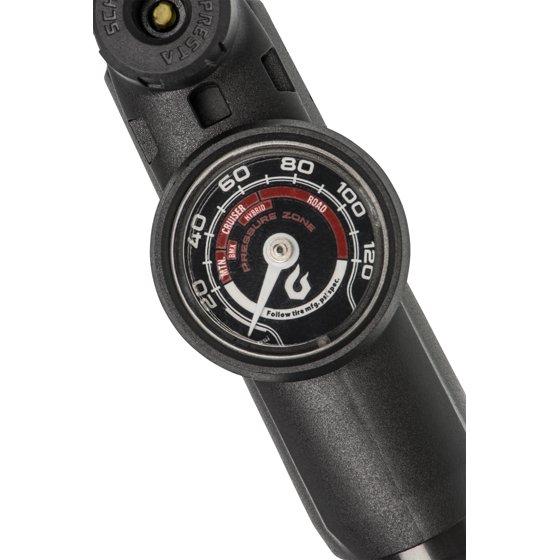 - Built in Pressure Zone gauge with convenient target inflation ranges by bicycle type in addition to PSI