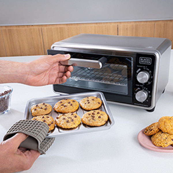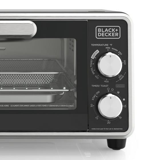 - Air Fry Technology: Black+Decker Crisp ‘N Bake PRO 4-Slice Countertop Air Fry Toaster Oven hot-air delivers crisp, fried taste with little oil.
