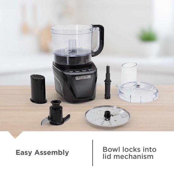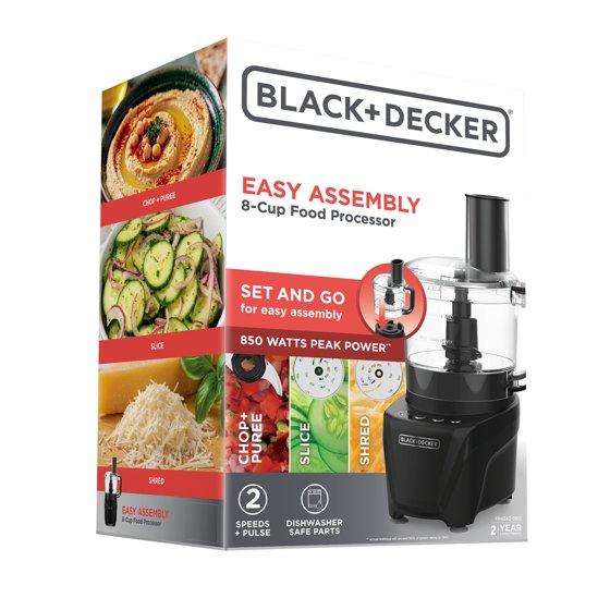 BLACK+DECKER Easy Assembly 8-Cup Food Processor, 850W, 2 Speeds + Pulse, Chop, Puree, Slice, Shred