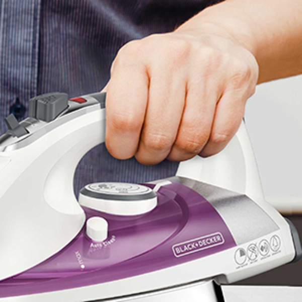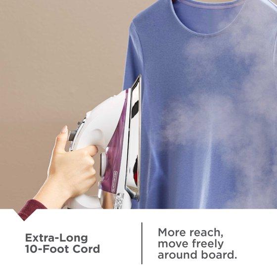 BLACK+DECKER Steam Iron for Clothes, 1500W, Stainless Steel Soleplate, Auto Shut-Off, Self-Cleaning, 10ft Cord, White
