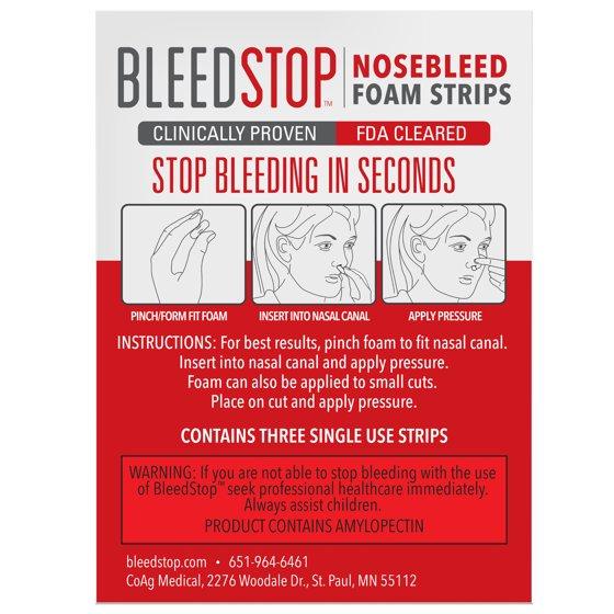 - HOW TO USE: To use a BleedStop strip on a nosebleed, pinch one end of foam to conform to nasal cavity if necessary, insert and hold until bleeding stops. If you're applying a foam strip to a wound or cut, simply press it over the wound for a few seconds before bandaging with sterile gauze, if needed. Please seek emergency medical treatment if bleeding doesn't stop after a prolonged period of time.