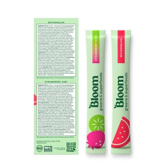 Bloom Nutrition Greens & Superfoods Powder Sticks (Watermelon, Strawberry Kiwi) 10 Count