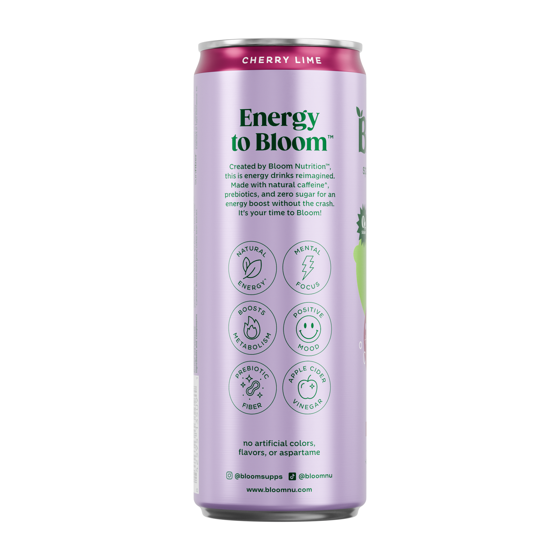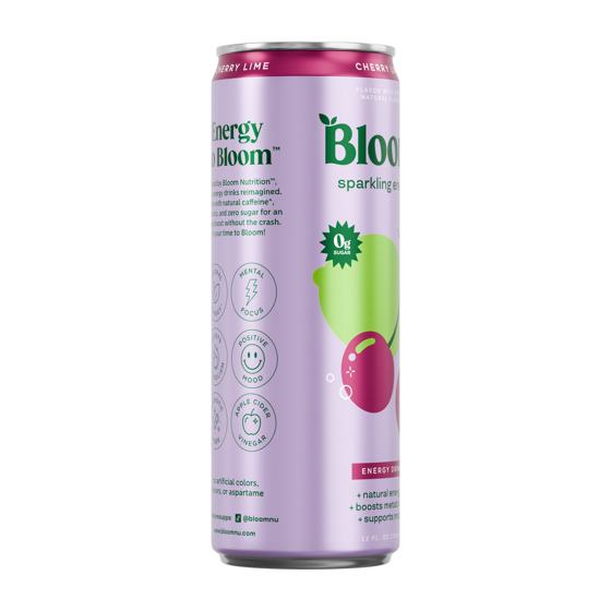 Bloom Nutrition Sparkling Energy Drink, Cherry Lime, 12 fl oz Single Can