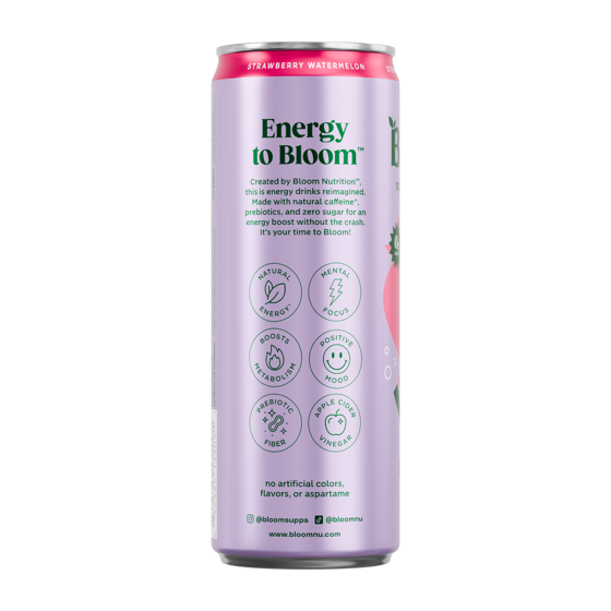 Bloom into your best self with our zero-sugar sparkling energy drink! Made with better-for-you ingredients like natural caffeine, prebiotics, lychee, and more, you can expect to increase energy, boost metabolism, and promote focus & positive mood without the crash. Available in 4 delicious flavors. See what the fizz is all about!
