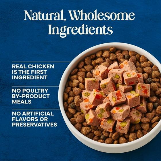 - REAL CHICKEN AS THE FIRST INGREDIENT: This Blue Buffalo fresh dog food is crafted with real chicken as the first ingredient, plus tasty carrots and peas