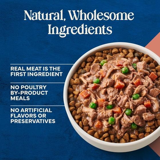 - REAL MEAT AS THE FIRST INGREDIENT: This Blue Buffalo fresh dog food is crafted with real beef as the first ingredient, plus tasty carrots and peas
