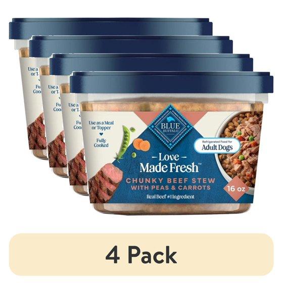 (4 pack) Blue Buffalo Love Made Fresh Dog Food, Refrigerated, Chunky Beef Stew, 1-lb Tub