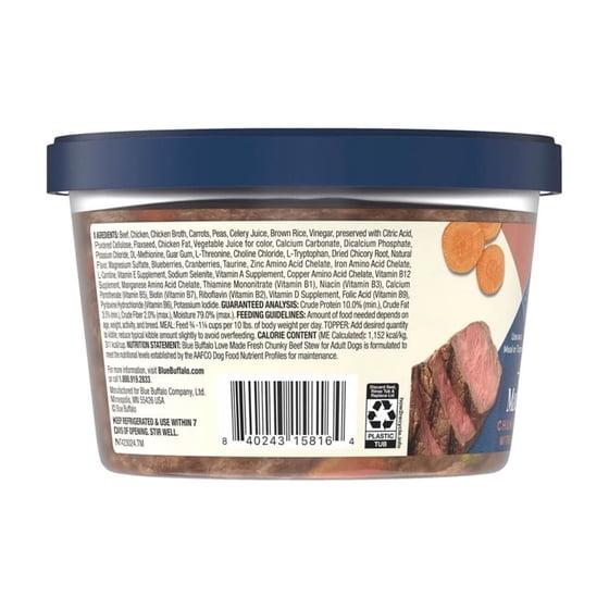 - Contains: One (1) 1-lb tub of BLUE Love Made Fresh Adult Dog Chunky Beef Stew With Carrots and Peas
