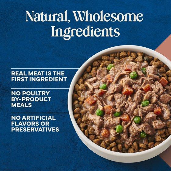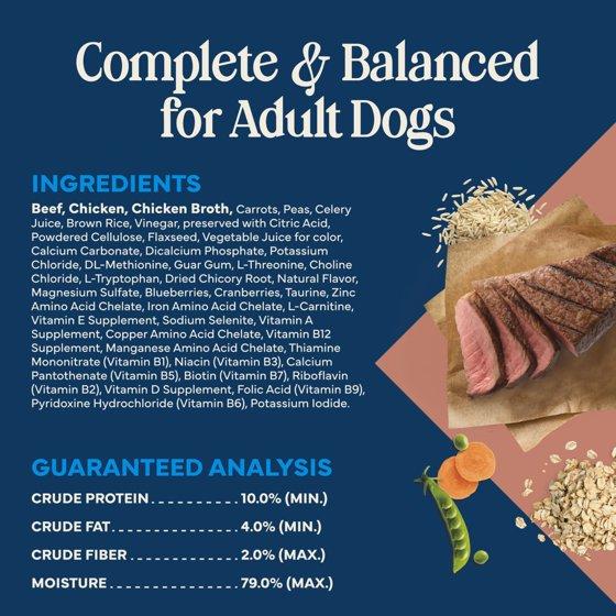 - REAL MEAT AS THE FIRST INGREDIENT: This Blue Buffalo fresh dog food is crafted with real beef as the first ingredient, plus tasty carrots and peas