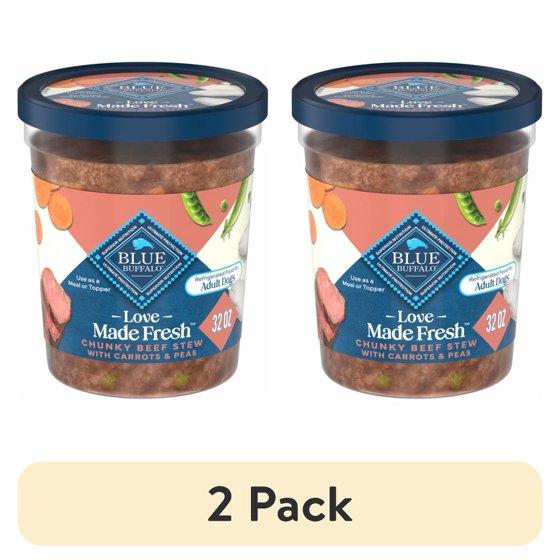 (2 pack) Blue Buffalo Love Made Fresh Dog Food, Refrigerated, Chunky Beef Stew, 2-lb Tub