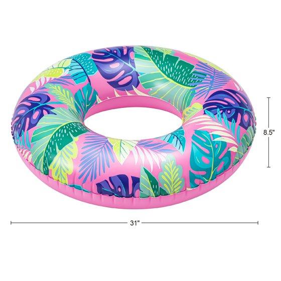 Have a blast cooling off under the sun with the Bluescape Pink Tropical Inflatable Swim Tube. This pool float is durably constructed with puncture-resistant materials. It features an eye-catching tropical nature design, perfect for a summer setting. With only 1 air chamber, it is quick and easy to inflate. It's unisex design and convenient size make it ideal for adults and older children. Just fill this Pink Tropical swim tube up with air, and it will be a bright spot in having fun at the beach or pool!