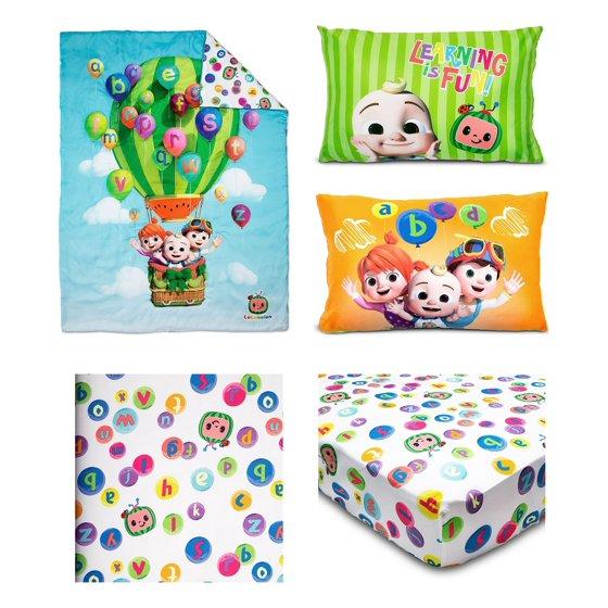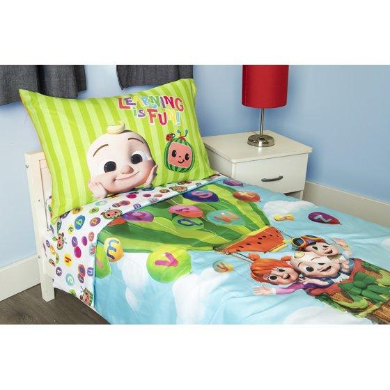 - Cocomelon ""Let's Go Play"" 4-Piece Toddler Bed Set, featuring the fun and educational characters from the popular preschool Youtube series are sure to delight young fans and inspire dreams of learning, fun, music and playful adventures