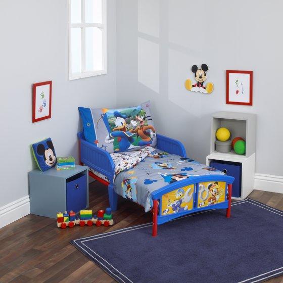 Disney Mickey Mouse Having Fun 4-Piece Toddler Bedding Set, Toddler Bed, Blue