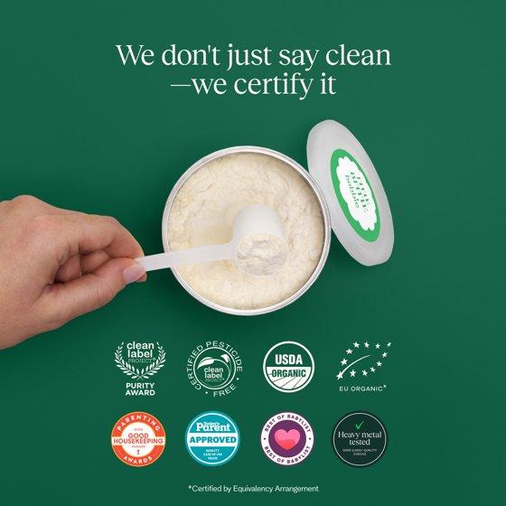 ORGANIC LACTOSE, ORGANIC NONFAT MILK, ORGANIC HIGH OLEIC (SAFFLOWER OR SUNFLOWER) OIL, ORGANIC LOW ERUCIC ACID RAPESEED OIL, ORGANIC WHEY PROTEIN CONCENTRATE, ORGANIC COCONUT OIL, ORGANIC LINOLEIC (SUNFLOWER OR SAFFLOWER) OIL, LESS THAN 1%: ORGANIC LOW ERUCIC ACID RAPESEED LECITHIN, SCHIZOCHYTRIUM SP. OIL*, MORTIERELLA ALPINA OIL**, CALCIUM PHOSPHATE, POTASSIUM CITRATE, SODIUM CHLORIDE, CALCIUM CARBONATE, POTASSIUM HYDROXIDE, POTASSIUM PHOSPHATE, MAGNESIUM CHLORIDE, POTASSIUM BICARBONATE, FERROUS SULFATE, POTASSIUM CHLORIDE, ZINC SULFATE, CUPRIC SULFATE, MANGANESE SULFATE, POTASSIUM IODIDE, SODIUM SELENITE, CHOLINE BITARTRATE, ASCORBIC ACID (VITAMIN C), ASCORBYL PALMITATE, INOSITOL, L-CARNITINE, MIXED TOCOPHEROLS CONCENTRATE, DL-ALPHA TOCOPHERYL ACETATE (VITAMIN E), NIACINAMIDE (VITAMIN B3), CALCIUM PANTOTHENATE, VITAMIN A PALMITATE, RIBOFLAVIN (VITAMIN B2), THIAMINE HYDROCHLORIDE (VITAMIN B1), PYRIDOXINE HYDROCHLORIDE (VITAMIN B6), FOLIC ACID, PHYTONADIONE (VITAMIN K), BIOTIN, CHOLECALCIFEROL (VITAMIN D3), CYANOCOBALAMIN (VITAMIN B12). CONTAINS MILK. * A source of docosahexaenoic ac