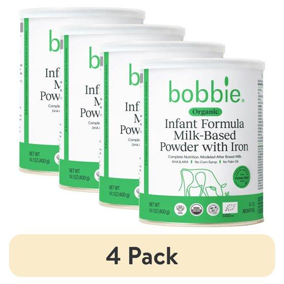 (4 pack) Bobbie Organic Original Infant Formula for Everyday Feeding, Milk-Based Powder with 1.2mg Iron, Skim Milk Recipe, Certified USDA Organic, 14.1 oz Can