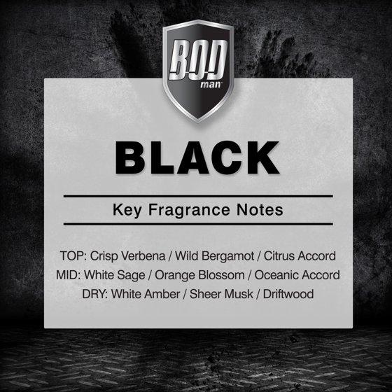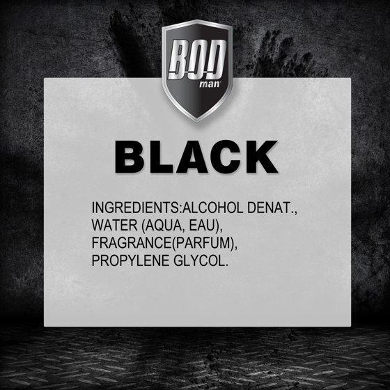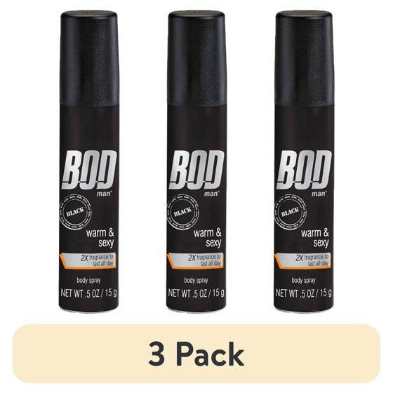 BOD Man Black Body Spray for Men, 0.5 Oz. An all-over body spray that combines a designer fragrance with effective deodorant protection. Bod Black is smooth, potent, smokin' hot. So beyond what you (or she) has ever smelled before, irresistably sexy! Not tested on animals. Crafted with pride in USA. Hold can 6 inches from your body and let it rip, including your chest, neck, underarms - anywhere you want to smell clean and sexy. (No, not there!)