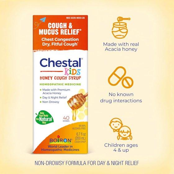 Boiron Chestal Kids Honey Cough Syrup, Homeopathic Medicine for Cough & Chest Congestion, 6.7oz