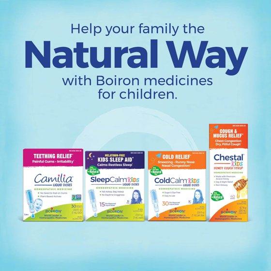 Chestal Kids Honey by Boiron combines homeopathic medicines that traditionally treat different types of coughs with the goodness of real honey to soothe the throat. This multi-symptom cough syrup loosens chest congestion with no worry of interaction with other medications.* It’s recommended for children ages 2 and up. Children's Chestal Honey helps relieve all types of common coughs. First, the natural goodness of honey in Chestal Honey coats and soothes your throat. Then, the blend of safe homeopathic medicines gets to work loosening chest congestion thereby making all types of common coughs more productive for a speedier recovery. Children's Chestal Honey is your day and night solution—calming those dry, fitful coughs at bedtime so they don’t prevent sleep, but without drowsy side effects for the day. *Claims based on traditional homeopathic practice, not accepted medical evidence. Not FDA evaluated.