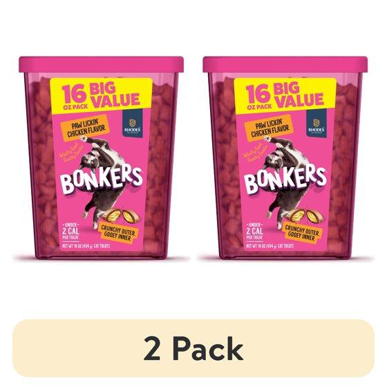 (2 pack) BONKERS Bites Paw Lickin' Chicken Flavor Crunchy & Soft Treats for Cats, 16oz Tub