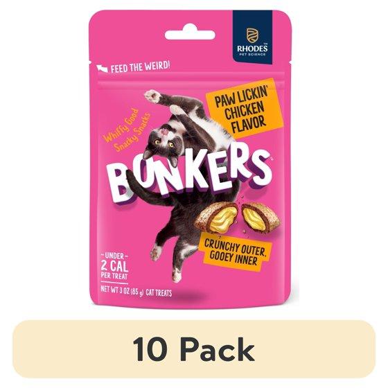 (10 pack) BONKERS Bites Paw Lickin' Chicken Flavor Crunchy & Soft Treats for Cats, 3oz Bag