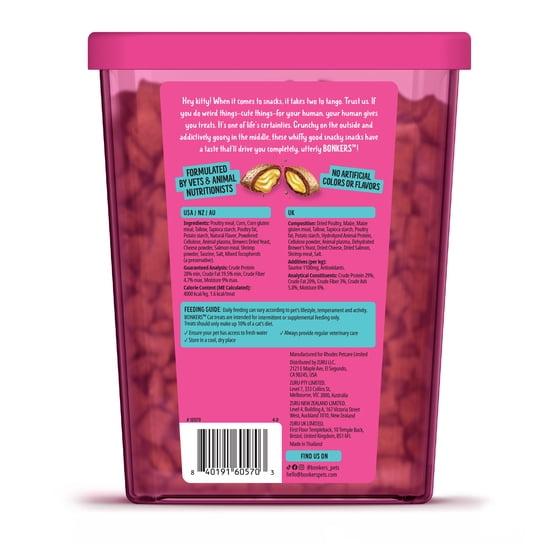 BONKERS Seafood & Eat It! flavor cat treats have a crunchy outer layer and irresistibly gooey center, delivering a texture and taste combination that even the pickiest of cats will go Bonkers for. Created in collaboration with leading animal nutritionists, BONKERS’ carefully formulated recipes are made up of high-quality proteins and are free from wheat, soy, artificial colors and flavors, so you can feel good about treating your cat. Whether it's time spent bonding with your cat, in-between meal snacks, or playtime, we’ve spent a long time perfecting these treats and are confident they will drive your pet completely, utterly Bonkers! - Crunchy on the outside, irresistibly gooey on the inside - Suitable for all cat life stages - Less than 2 calories per treat so perfect for daily use - Wheat and soy free - Free from artificial colors and flavors - Epic value resealable tub for easy storage and maximum freshness - Carefully formulated by animal nutritionists - Perfect size for treat dispensing cat toys