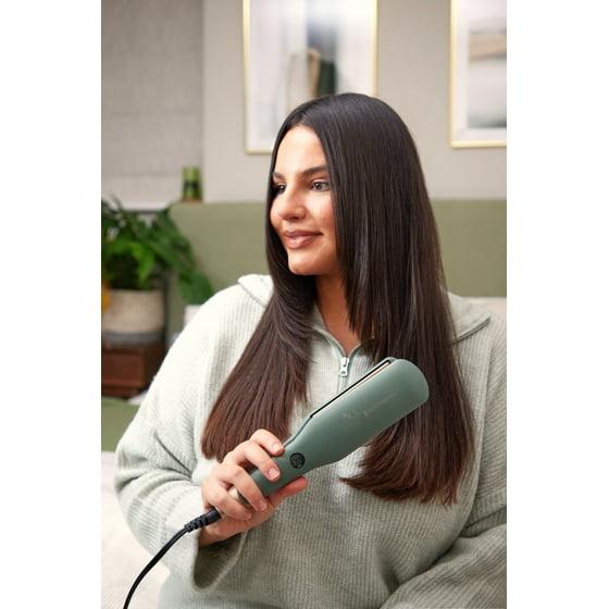 - Botanical extract infusion: The flat iron is embedded with micro-conditioners of jojoba, aloe, and rose to help smooth hair and add natural shine.