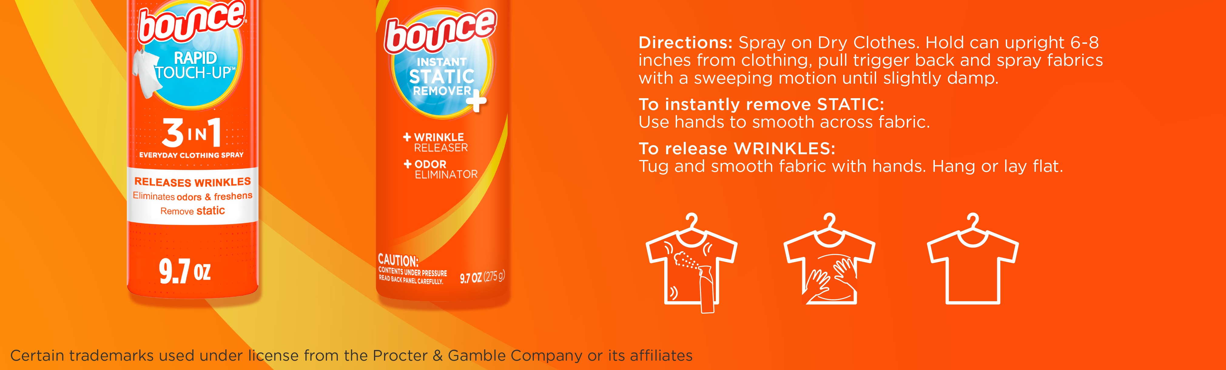 - FOR BEST RESULTS: Spray Bounce 3-in-1 Anti Static Spray on dry clothes, gently smooth and tug fabric, and lay flat or hang to dry for static and wrinkle-free results