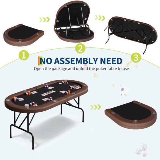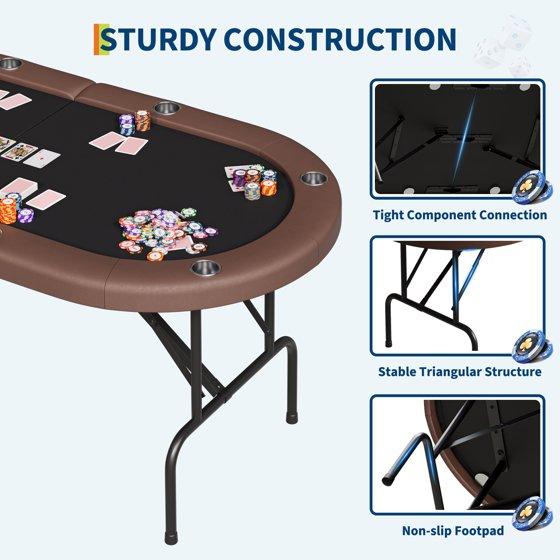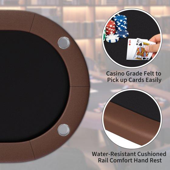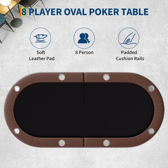 - Poker Night Experience--Accommodates up to 8 players, this 6-foot oval poker table is perfect for your Texas Holdem or casino game nights. The professional-grade felt surface ensures smooth card glide, providing an authentic casino-style feel for every hand you play