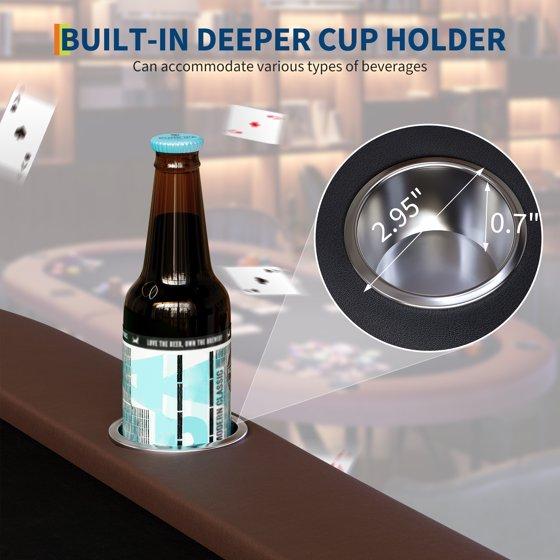 - Upgrade Folding Poker Table Design--This foldable poker table is designed with 8 deeper stainless steel cup holders to hold drinks very securely without fear of spills