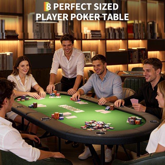 - Poker Night Experience--Accommodates up to 8 players, this 6-foot oval poker table is perfect for your Texas Holdem or casino game nights. The professional-grade felt surface ensures smooth card glide, providing an authentic casino-style feel for every hand you play