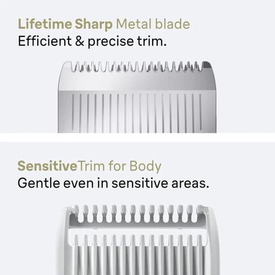 - Gentle on sensitive skin: Groom with SensitiveTrim comb for body, designed for maximum safety and comfort even on sensitive body areas