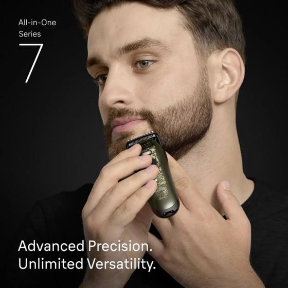 - Advanced precision, unlimited versatility: Braun's All-in-One Trimmer Kit, Series 7, lets you effortlessly trim your beard, hair, ears, nose and body