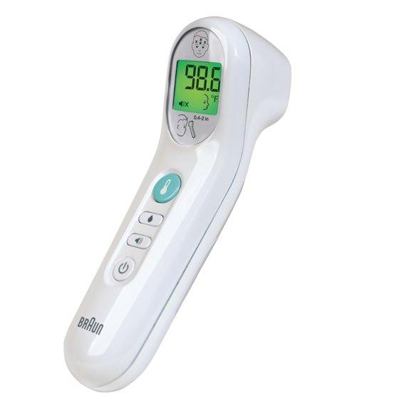 We know that your family’s health is of the utmost importance, and when it comes to checking for a fever at home, you want accurate and reliable results quickly. Braun is the #1 brand recommended by pediatricians.* This forehead thermometer for adults and kids, the Braun No Touch 3-in-1 thermometer, provides clinically accurate readings without waking your child up. This easy to use, non-contact thermometer takes readings in 2 seconds and features a color-coded display that will glow green, yellow, or red to present the temperature reading. A green display suggests a normal temperature, yellow signifies a fever, and a red display indicates a high fever. The 3-in-1 mode allows you to use the thermometer to not only measure forehead temperature, but to also take food and liquid temperatures so you can make sure bottle and bath water temperatures are right for your baby. In addition, its design makes it ideal to keep in a diaper bag when you're traveling. For parents who need quick fever detection and reliable health monitoring, this baby thermometer for infants and adults supports safe, non-contact temperature checks throughout every stage of family life. *Based on survey reporting that of surveyed pediatricians who recommend a brand of thermometers, Braun is the most recommended.