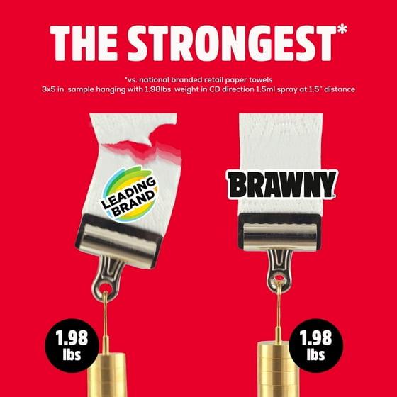 - Discover the ONLY 3-Ply premium paper towel! The NEW Brawny® 3-Ply Tear-A-Square® Paper Towels are the strongest on the market, offering superior strength, absorbency, and durability.*