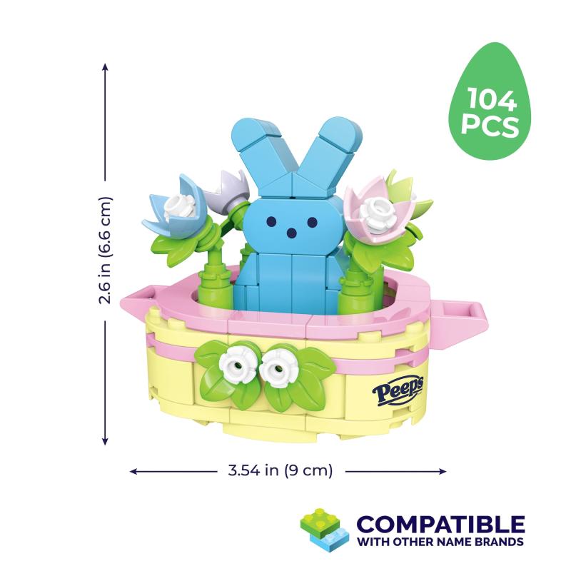 Brickcraft PEEPS Blue Bunny Easter Basket Building Kit (104-Piece Set), Easter Brick Toy, Candy Collectible, Spring Decor, Floral Display, Gift for Kids and Adults