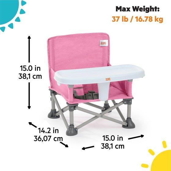 The original Pop N Sit from Bright Starts is the ultimate go & grow seat, with over 2 million sold! From inside to out, baby to toddler, and mealtime to playtime, this multi-purpose travel booster offers your little one a secure place to sit. This #1 Booster Seat* from the #1 Manufacturer of Feeding Boosters** has 3 modes of use: floor seat, feeding seat with removable tray, and toddler booster. For babies, attach to an adult chair using the included straps and BPA free tray to create a portable chair top high chair. For toddlers, use the seat as a booster that can pull up to the table by removing the tray. In floor mode, you can use the Pop N Sit whenever you need an extra seat - picnics, sporting events, or right at home! The rear storage pocket holds your daily essentials. Folds compactly when not in use and includes a carrying bag with shoulder strap. Dishwasher safe tray and machine washable seat pad. Fold dimensions: 14.57" (H) 15.35" (W) 15.35" (L). Made for 6 months to 3 years old or up to 37 pounds. Gender neutral pink color. No tools required for assembly. #1 Booster* (*Circana, US Unit Sales, Jan-Dec 24)