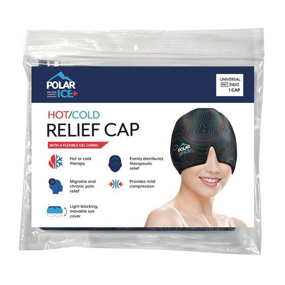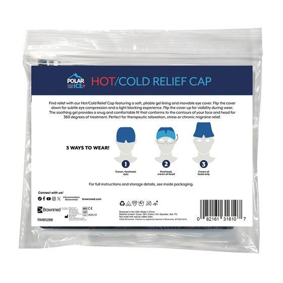 Brownmed Polar Ice - Hot/Cold Relief Cap with Soft Gel Lining & Movable Eye Cover – 360 Degrees Therapy for Migraine, Headache, Stress Relief